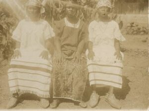 Mention manuscrite au verso :  » Femmes d’un commerçant noir en costumes de fête. »