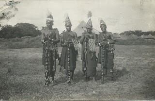 Mention manuscrite au verso :  » Costumes de jeunes gens initiés à la société secrète. Dis, ne sont-ils pas jolis ? »