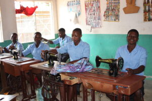 Puis, avec l’augmentation du nombre de participantes, une construction devient nécessaire. L’aide financière de la Mission française de Coopération, puis de la Caritas, permet la construction de salles de travail et d’un internat. Rapidement, le nombre d’élèves dépasse la